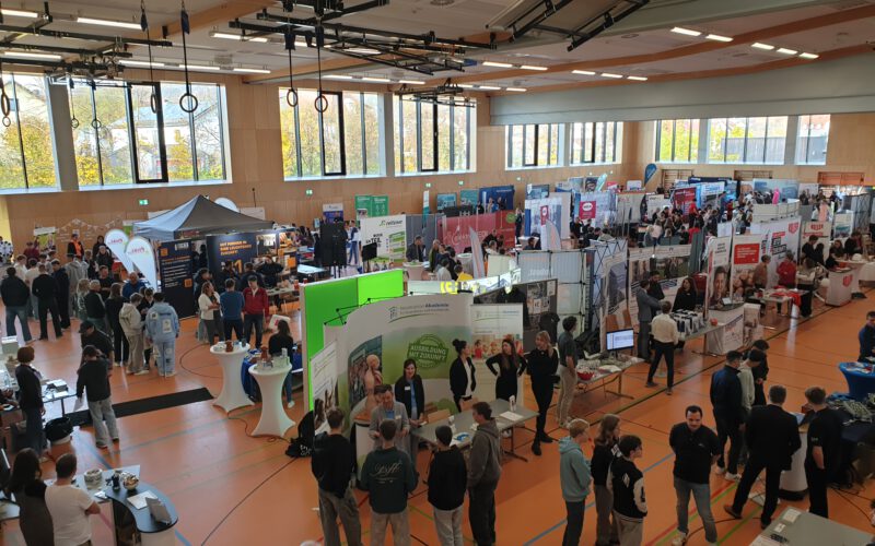 Am letzten Schultag vor den Herbstferien fand für die Schülerinnen und Schüler aus den 8. bis 10. Klassen die Berufsausbildungsmesse in der Bühlerhalle statt. Es nahmen insgesamt über 60 Aussteller teil – von der Bundeswehr über regionale Firmen bis hin zu sozialen Einrichtungen waren sehr viele Berufszweige vertreten. (Ein Beitrag von Emilia (10C), Herrn Kirsch und der Schulblog-Redaktion.)