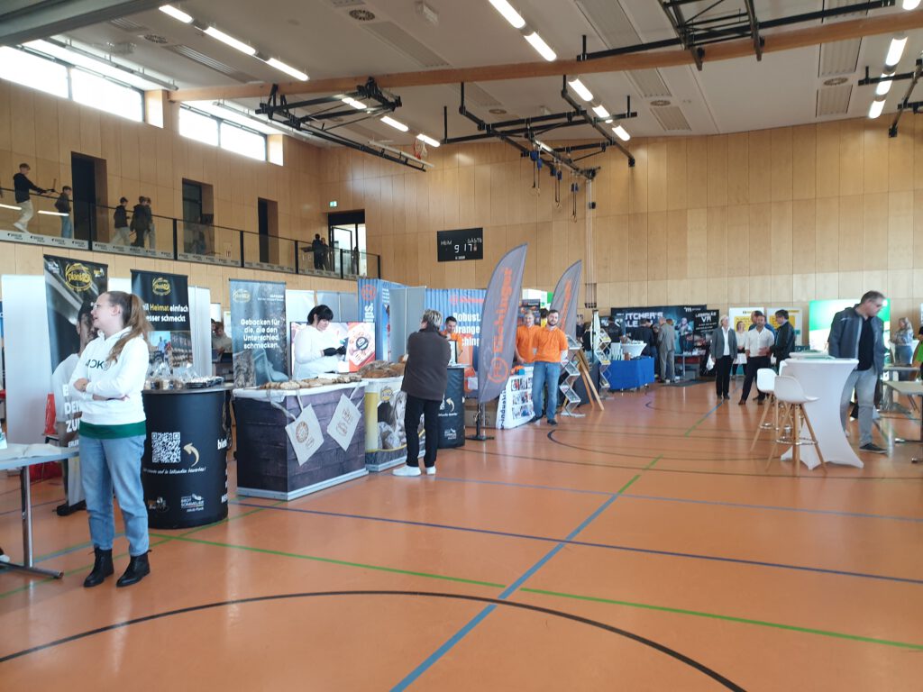 An den einzelnen Ständen der insgesamt 65 Unternehmen aus der Region konnten sich dann die Schülerinnen und Schüler ungefähr 1,5 Stunden lang selbstständig über das jeweilige Unternehmen informieren. Wenn man durchschlenderte, wurde man auch häufig gezielt angesprochen. Es gab reichlich Werbegeschenke und auch etwas zu essen. Nach der Messe wusste nun der/die eine oder andere vielleicht, in welche Richtung er/sie beruflich mal gehen möchte oder wohin auch nicht.