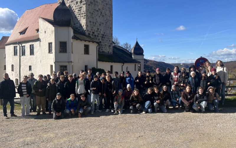 Kurz vor den Herbstferien machten die Klassen 7A und 7C eine Exkursion zur Burg Prunn bei Riedenburg im Altmühltal. Die Burg konnte man schon von Weitem auf dem Felsen über der Altmühl sehen – der Anblick war super! (Ein Beitrag von Lena Netter, 7C.)