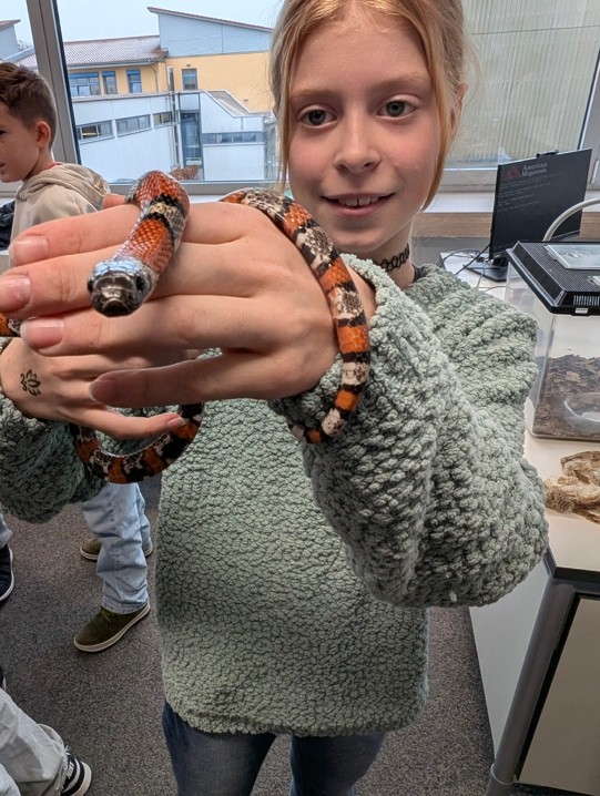 Es war ein sehr schönes Erlebnis, diese Tiere einmal so nah sehen und auch anfassen zu dürfen. Vielleicht kommt Herr Werdan am Ende des Schuljahres noch mit seinen Insekten und Spinnen. Das wäre toll …