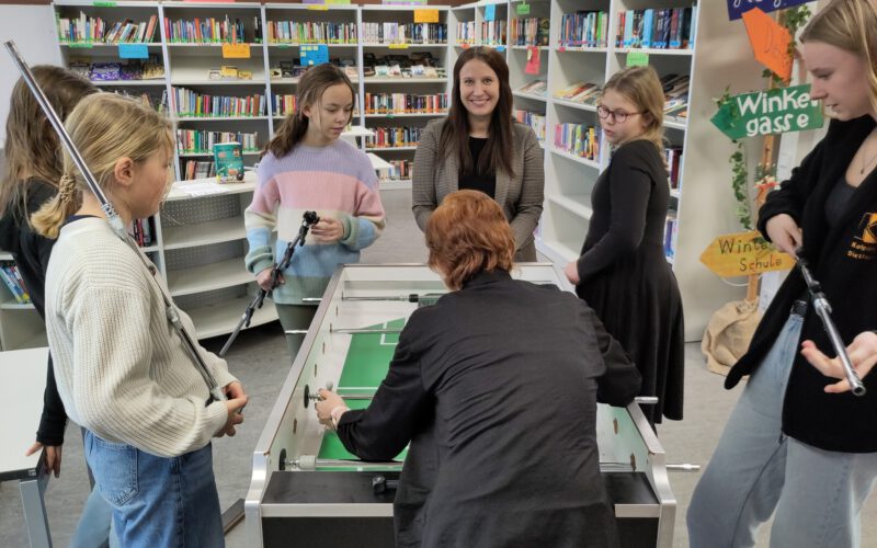 Im Dezember baute unsere Gruppe „MINT für Mädchen“ unter der Leitung von Frau Lux während des Nachmittagsunterrichts einen neuen Kicker für die Schule auf. Für dieses Projekt nahmen wir uns zwei Schulstunden Zeit, in denen Teamarbeit und handwerkliches Geschick gefragt waren. (Ein Beitrag von Emily Sachse, 9D.)