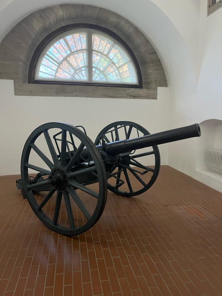 Die Klassen waren sehr erstaunt über die realistische Nachempfindung eines Schützengrabens, von welchem aus Soldaten damals auf die Gegner feuerten. Ebenfalls waren viele Originalstücke aus der Zeit zu sehen, wie ein großes Schussgeschütz. Aber natürlich gab es auch das eine oder andere zum Ausprobieren, zum Beispiel ein 20 kg schwerer Rucksack: Da konnte man sich gleich viel besser vorstellen, wie es sich für einen Soldaten angefühlt hatte, seine Ausrüstung über Kilometer hinweg mit sich herumzutragen.