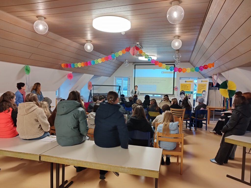 Im Februar bedeutete es für die Sozialwesen-Klassen 8C und 8D: Raus aus dem Klassenzimmer, rein in die Praxis! Gemeinsam mit ihren Sozi-Lehrkräften Frau Werner, Frau Botzem-Toepell und Frau Diepold machten sich die Klassen auf den Weg zur Regens-Wagner-Einrichtung in Holnstein, um das kennenzulernen, was im Unterricht sonst meist nur theoretisch – auf dem Papier oder Tablet – behandelt wird. (Ein Beitrag von Frau Diepold.)