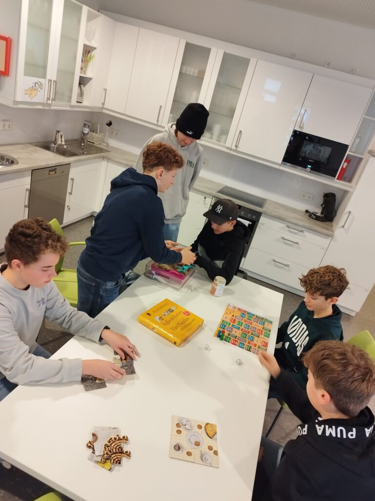 Der Besuch – inzwischen eine schöne Tradition im Fach Sozialwesen – begann mit einem besonders herzlichen Empfang. Für die Klassen 8C und 8D war eigens ein abwechslungsreiches Programm vorbereitet worden. Bei Croissants und Getränken gab es zunächst spannende Einblicke in die Einrichtung und das Berufsbild. Anschließend wurde es praktisch: Beim Rollstuhl-Parcours zeigte sich schnell, dass selbst kleine Hindernisse plötzlich erstaunlich groß wirken können. Ein Perspektivwechsel, der Eindruck hinterließ! Auch der Besuch der Ten-E, die Besichtigung der hauseigenen Werkstätten sowie das Ausprobieren des Sinnes-Raums mit verschiedenen Spielen machten deutlich, wie vielfältig und kreativ die Arbeit vor Ort ist.