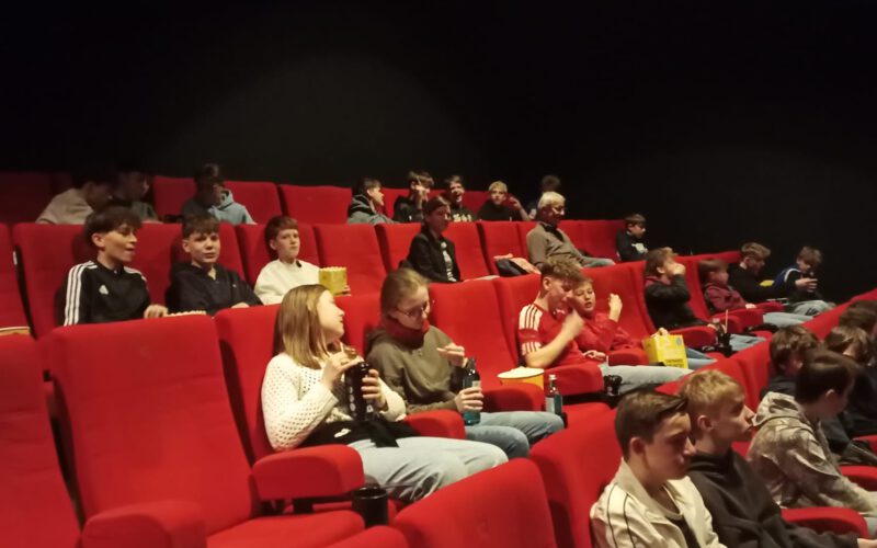 Ja, auch so kann Schule sein! Im Rahmen der alljährlichen Bayerischen Schulkinowoche machten sich knapp 50 Schülerinnen und Schüler der Klassen 8A und 8B auf