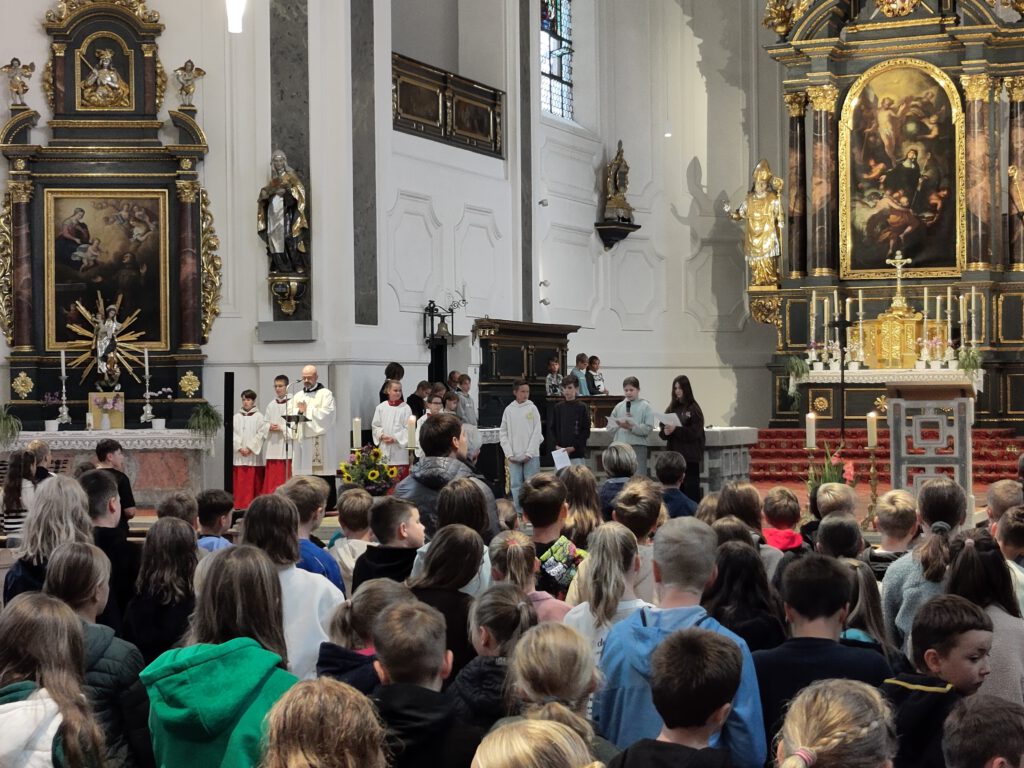 Das diesjährige Motto lautete: „Du bist nicht allein auf deinem Weg.“ Und in der Tat, ein Blick in das Kirchenhaus reichte, um zu zeigen: All die zahlreichen Kinder und Jugendlichen machten sich gemeinsam und unter Begleitung ihrer Lehrkräfte auf ihren Weg durch das neue Schuljahr 2025/26. Und wenn es doch mal anstrengend oder vielleicht auch etwas frustrierend werden sollte – keine Angst: Pater Christoph hat uns allen extra für die schwierigen, aber auch für die schönen Momente einen helfenden Beistand vom Himmel herab erbeten.