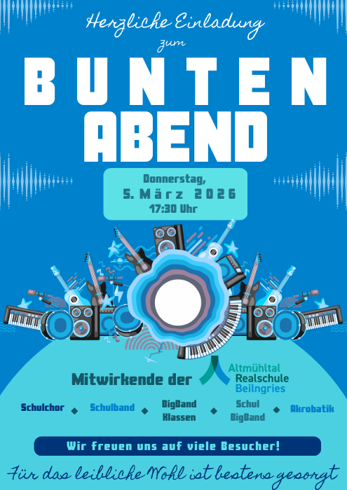 Der Countdown bis zum „Bunten Abend“ am kommenden Donnerstag läuft immer weiter ab: Schön langsam wird es also ernst! Die Vorbereitungen unserer Künstlerinnen und Künstler gehen in die entscheidende Phase, die Bühne in der Bühlerhalle steht bereits – Zeit, dass es bald losgeht!